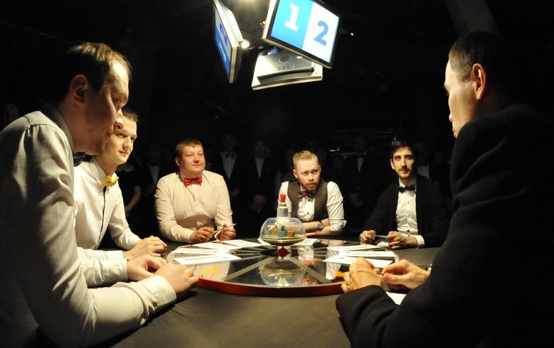 Атмосферу элитарности клуба организаторам удалось передать вполне достоверно – строгий черно-белый дресс-код, живая музыка, настоящий волчок, загадочный ведущий, которым был участник команды «Сега Мега Драйв 16 бит» Андрей Глинский – в общем, все находящиеся в зале чувствовали себя участниками настоящего шоу, и это, к слову, было здорово!