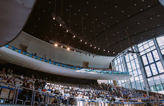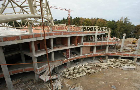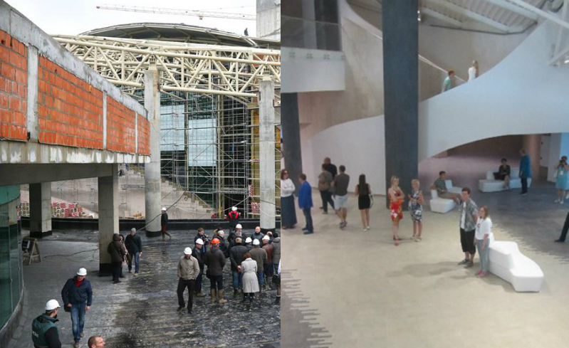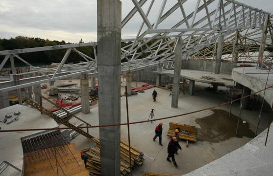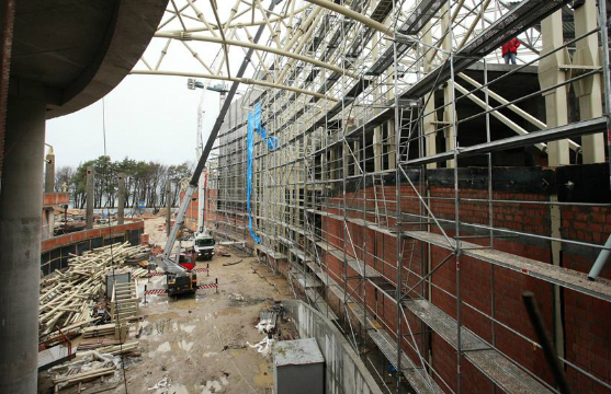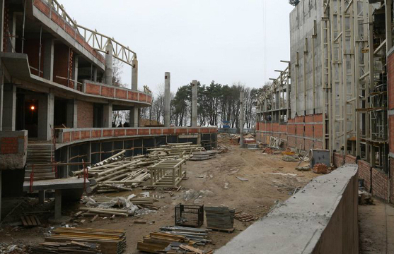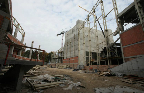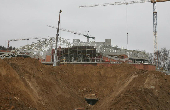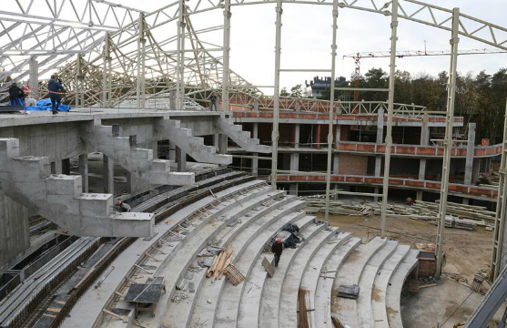 Во время всего строительства, развернувшегося зимой 2014-2015 и весной 2015 года, время играло против строителей. Слишком большим был план работ, слишком мало было времени. Но губернатор был уверен в своих силах и сам лично контролировал стройку, выезжая на объект каждую неделю. За стройкой онлайна можно было следить в Интернете по двум веб-камерам. Бывали на стройке и чрезвычайные происшествия: так в январе пришлось на две недели приостановить монтаж крыши из-за урагана. А в апреле уже шла отделка помещений.