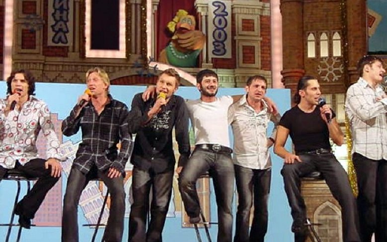 В приветствии «Утомлённые солнцем» шутят о шоу: «Форт Боярд» с Леонидом Ярмольником и «Голод» с Василием Шандыбиным. Если помните, был такой одиозный депутат. Шандыбин с современного юмористического олимпа давно исчез, а вот про карликов из «Форта Боярд» нет-нет, да пошутят где-нибудь в межрегиональной лиге.