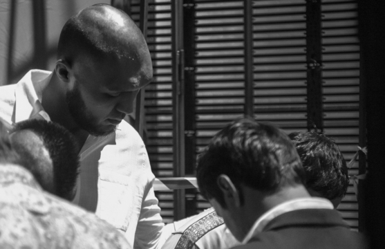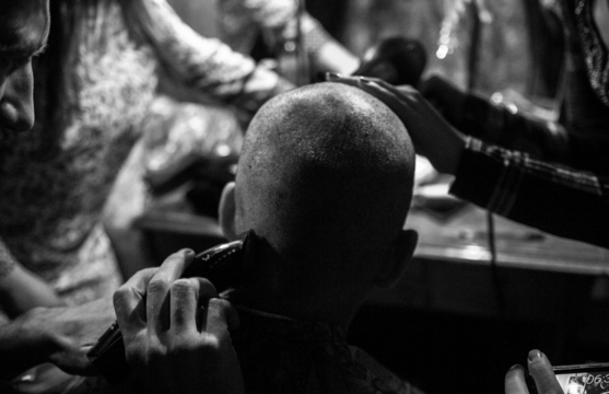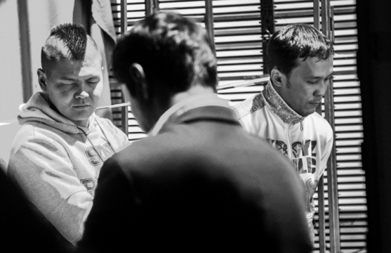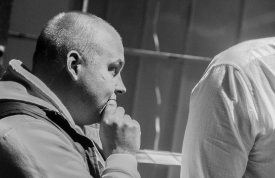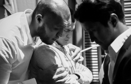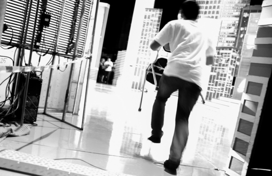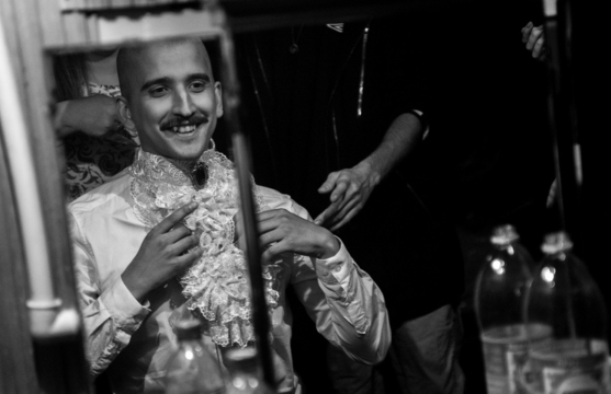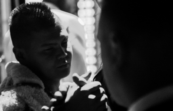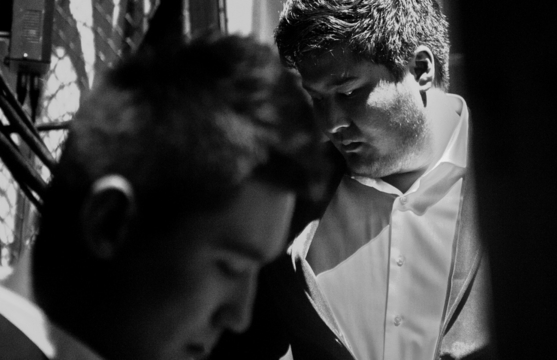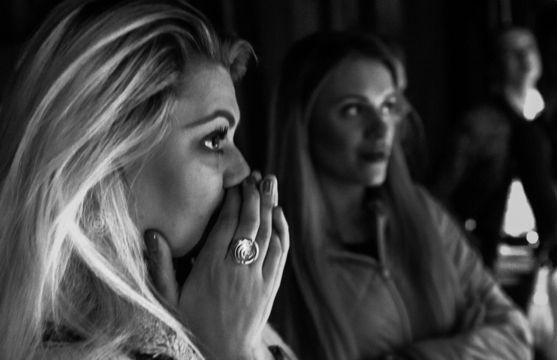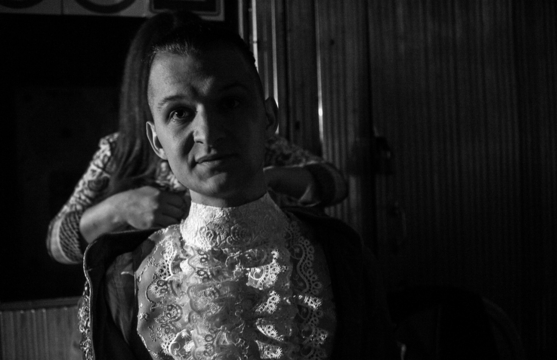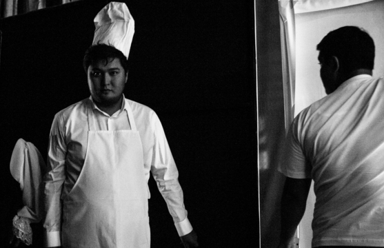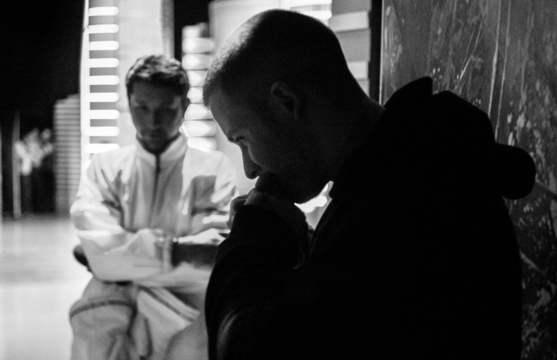 Две крайности закулисья: черно-белая съемка передает нервный накал и предельную сосредоточенность во время игры...
