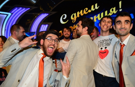 Несколькими минут до этого празднования Максим Ликсутов вручил Кубок мэра победителям сегодняшней игры – Сборной Дагестана, которая и стала пятым финалистом Высшей лиги этого сезона. Но Игра всегда хранит интригу – Константин Эрнст в честь дня рождения КВН просит добрать в финал «Спарту». Противоречий никаких – Александр Васильевич с удовольствием согласился с решением жюри, а Данияр Джумадилов, стоя на сцене, не скрывал слез радости.