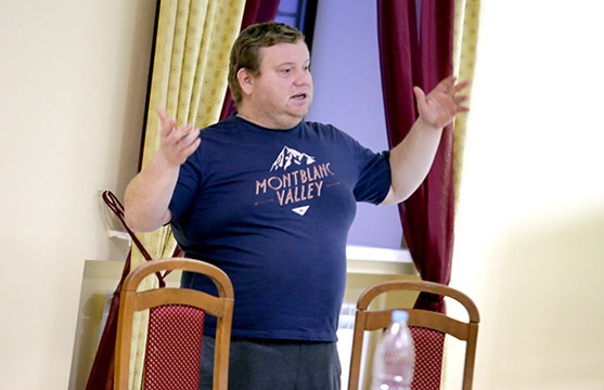 Но вернемся к обучению. Два редактора Высшей лиги, в последние годы работающие в Школе МС КВН, представляют две эпохи КВН не только по факту, но и на своих лекциях. Поэтому Михаил Наумович Марфин рассказывал ребятам об истории возникновения игры, телепередачи, интересных фактах о конкурсах, приемах, которые придумывали кавээнщики 80-х и 90-х годов. А Дмитрий Колчин передавал слушателям Школы нынешний редакторский опыт, делясь с ними секретами о тактике, стратегии КВН, стилистике команд, особенностях подготовки к той или иной игре, тем или иным конкурсам. Теория тут же разбиралась на «мультиках» - так с легкой руки Михаила Наумовича Марфина много лет назад были названы нарезки значимых игр, которые транслируются кавээнщикам страны. Здесь, как и в теории, редакторы отвечали за два века КВН, демонстрируя видеопримеры прошлого и настоящего.