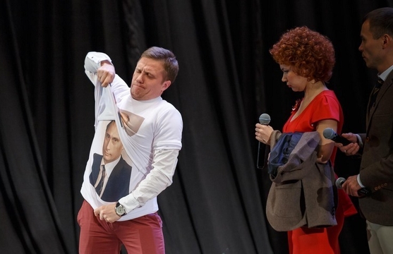 Артём: Мы конкретно такой путь не выбирали. Мы просто смеялись над тем, что нас смешило. На тот момент нас смешила конкретная политическая история, и мы посчитали, что это можно показать на большой сцене. Во многом благодаря Александру Васильевичу Маслякову.