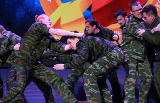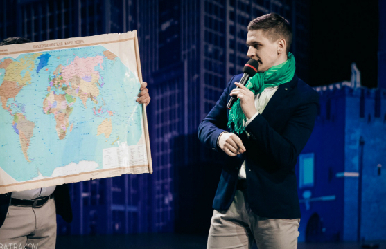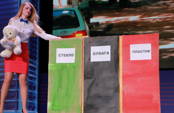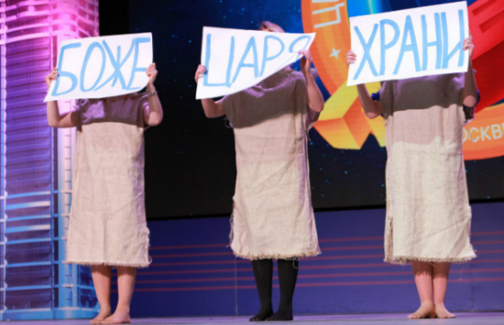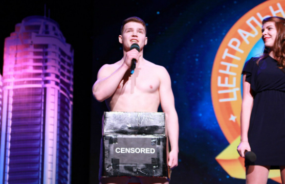 На сцене творилась самая настоящая вакханалия – ничего не возможно было понять, но это и вызывало истерический смех. Сталин в голове коня, девушка со звездами на груди и отбивка «Ленин. Партия. Комсомол», которую возбужденные зрители еще долго кричали на улице, не в силах «отойти» от такого «фееричного» выступления. Ведущий и эту команду не оставил без внимания – сделал вид, что очертил мелом круг вокруг своей тумбы.