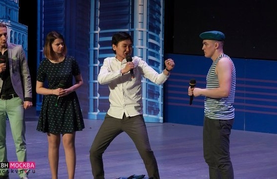 Настоящие актеры на сцене КВН, как и ожидалось, отыгрывали свой материал на ура. Хорошо зашли номер про проверку верности на молодежном канале и финальная песня о среднестатистических актерах, снимающихся в «Часе суда», рекламах и плохих сериалах. Завершили визитку, выпив за российское кино не чокаясь.