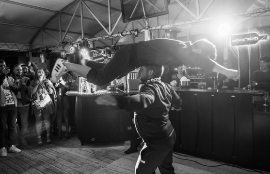Вчера в лаунж-баре «Медуза» зажигала сборная Большого Московского Государственного Цирка – или, если точнее, Михаил Озеров, финалист шоу «Голос», и Николай Коновалов с Анваром Саттаровым – они же танцевальная шоу-команда «Группа захвата». Окунемся в атмосферу?