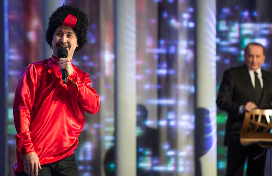 Эльдияр (в образе): Братан, подача где? Абдулниязов, иди сюда! (Приходит Сергей Душимов, «носитель» образа певца Абдулниязова). Где усы сбрил, дурень?