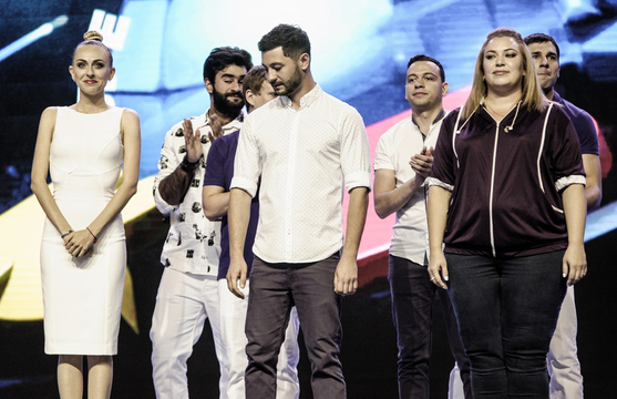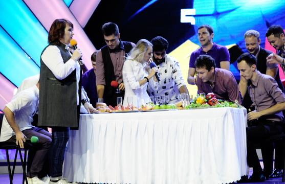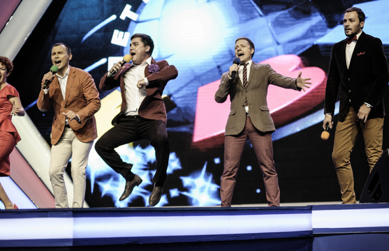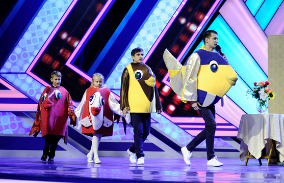 20.30 Первый конкурс сыгран, все четыре команды на сцене. Ждем вердикта от судей.