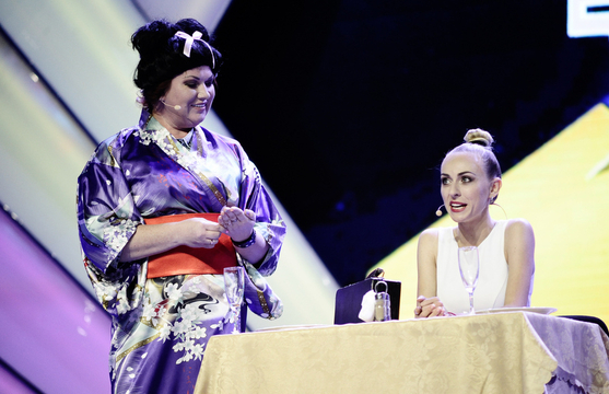 20.11 Помимо чемпионов на сцене два чемпиона есть и в зале – редакторы Высшей лиги Дмитрий Колчин («СОК», Самара) и Дмитрий Шпеньков («Обычные люди», МЭИ). Номер – в очереди к диетологу. В какой-то момент выходит ОЧЕНЬ сильно похудевшая Ольга Картункова. Снова овации.