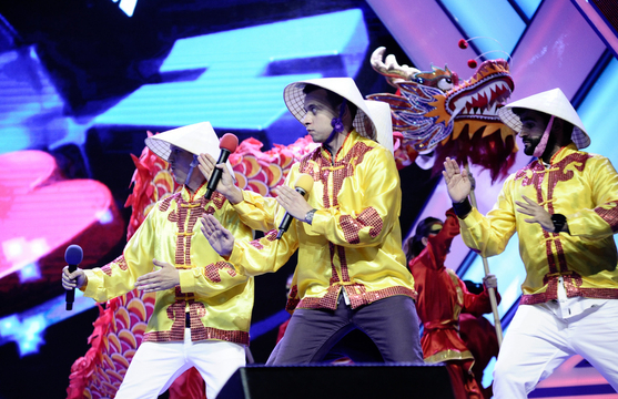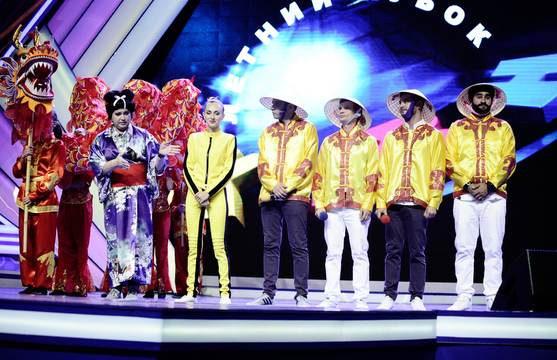 21.26 Финальный номер должен выявить самые сильные стороны каждой из команд – а песня о России. Точнее, что кажется странным в России иностранцам (дышать над картошкой, чайный гриб, финты Дзюбы, любить холодец). Очень сильно по вокалу.