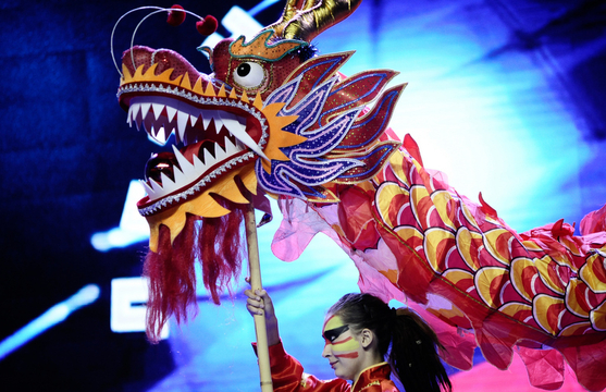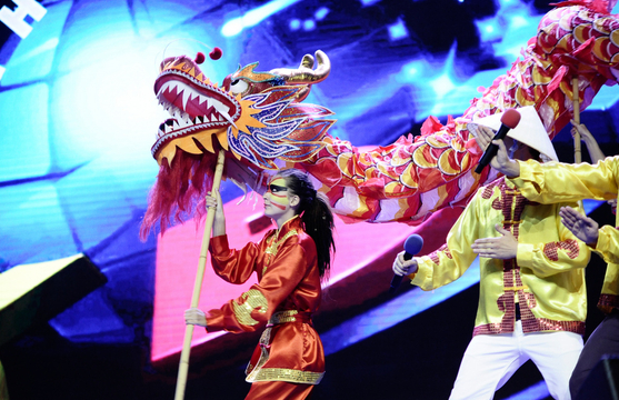 20.25 Катя собирается устроить Оле «восточную разборку» – на сцену вылетает (выносят) дракон.