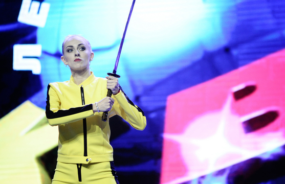 19,24 Появляются члены жюри – их встречают овациями. Зал сегодня потрясающий. И еще отметим новые декорации, сделанные специально для Летнего кубка во Владивостоке – они своим оформлением напоминают элементы вантового моста