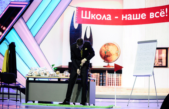 20.47 Филипп напоминает о том, что недавно «один очень известный человек посоветовал учителям, которых не устраивают их зарплаты, идти в бизнес». Заходит уже на подаче.