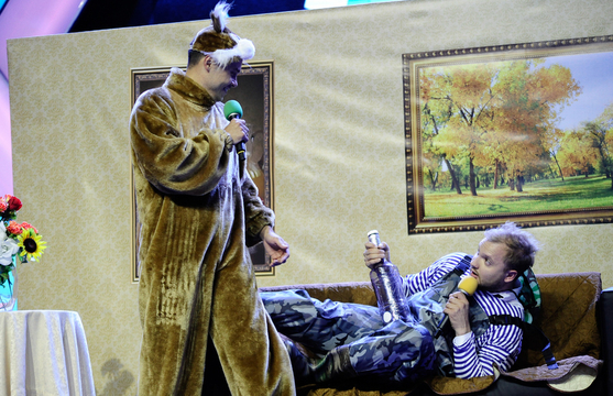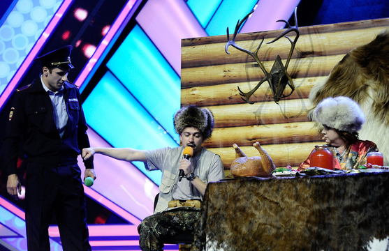 19.55 В финале добавляют, что в этом году мы были в Светлогорске и Владивостоке, а если еще побывает в Махачкале и на земле Франца-Иосифа, то «КВНом точно всю Россию покрестим». Отличное выступление.