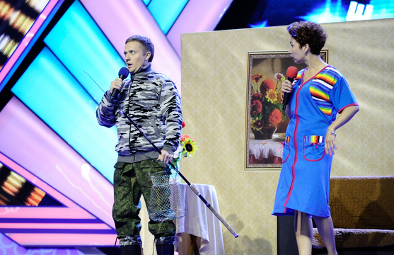 21.22 Номер-посвящение бессмысленному и беспощадному товарообороту с Китаем – в разрыв. Разносит зал сегодня эта парочка.