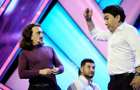 20.07 Азамат дает совет Александру Васильевичу – как ровесник ровеснику (ну, чисто визуально, по его собственному признанию). Мол, вести КВН надо с другой стороны – здесь же справа рулят. И поскольку Дорохов проявил в этот момент небывалую дерзость, следующий номер будет карательным. Отлично! Очень хорошо заходят.