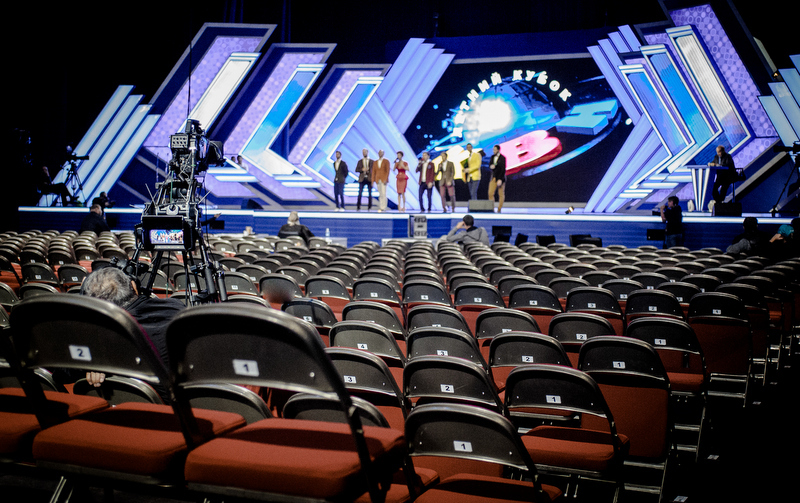 Смотрим, как ледовая арена превращалась в место проведения Летнего кубка чемпионов КВН: