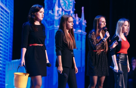 «Не такая», НИУ ВШЭ, показала свою исключительность в приветствии. Девушки играют классической линейкой с текстовым юмором. Передавать его в тексте мы не будем, чтобы не засвечивать архив команды, а по фотографиям, конечно, тоже не скажешь, что их шутки были умными, тонкими, порой жестковатыми, не неизменно смешными. Так что придётся вам поверить нам на слово.
