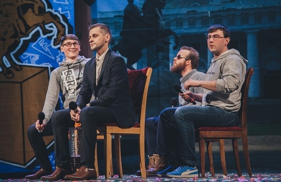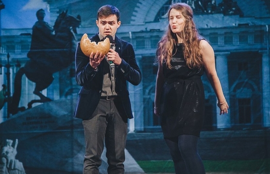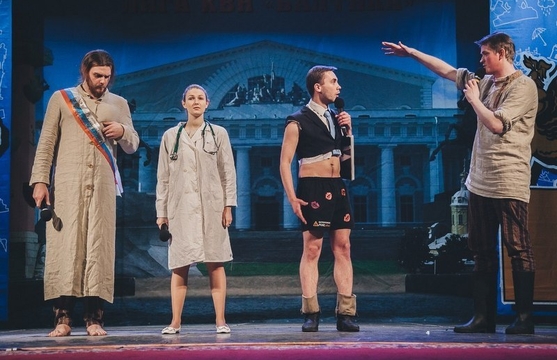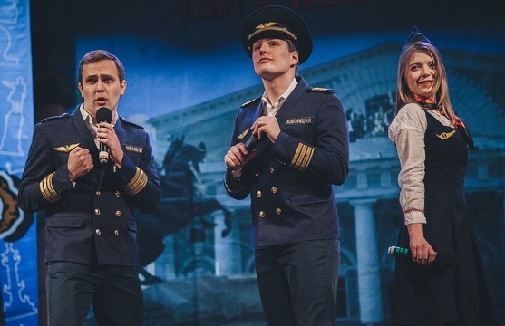 В шаге от пьедестала завершила сезон авиационная команда «Борт №9» из Домодедово. Два пилота, бортпроводник, стюардесса и колоритный пассажир-вокалист – вот и весь состав команды. Приветствие авиаторы посвятили внештатной ситуации на космодроме «Восточный», первому самолёту от РЖД и будням телевидения Кингисеппа. Повеселила зал шутка о фанате «Зенита», жена которого постирала футболку с чем-то красным, и на «Петровский» в таком виде пойти просто невозможно. В капитанском versus-батле первый пилот команды Николай Ковпинец встретился с представителем Мурманска и по общему ощущению в этой дуэли уступил, зато очень интересной у ребят из Подмосковья получилась идея музыкально-домашнего задания. 1917-й год, лофт хипстеров-революционеров Ленина, Бухарина и Сталина. В общем, мозги у команды есть, осталось научиться более уверенной актёрской подаче своего творчества и всё получится.