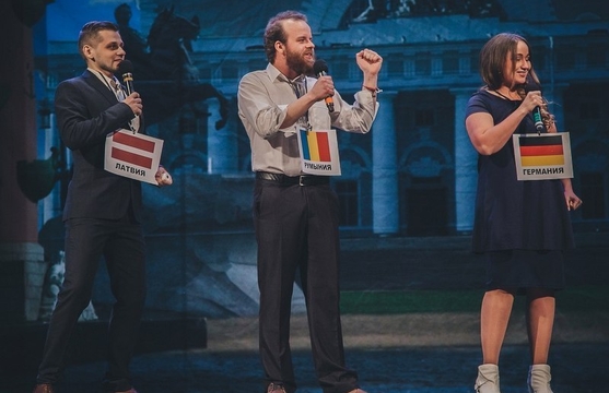 Совсем немного до победы в лиге не хватило единственной зарубежной команде финала – сборной Даугавпилса из Латвии. Среди козырей ребят из Евросоюза – смешные шутки на европейскую тематику, стильность и, конечно, неподражаемый бородатый Витёк – Виктор Кузьмин, исполняющий все шутки и песни с подкупающей искренностью, которая очень нравится зрителям. Капитанский versus-батл в исполнении Вити «порвал» зал, то же можно сказать о его выступлении в остальных конкурсах. Приветствие – отличные песенки, разминка – несколько точных ответов, музыкально-домашнее задание «Мальчишник в Питере» – попадание в типаж Зака Галифианакиса из «Мальчишника в Вегасе», подкреплённая актуальной переделкой шнуровского хита о том, где оказались герои утром – «В Питере, Вить!» Во время подготовки к игре команда включила вторую скорость, преодолевала финансовые, визовые и творческие трудности, но тут, как это часто бывает, не хватило буквально дня на доводку до ума последнего конкурса. Вести в счёте перед финальным конкурсом и почти победить опытную команду из Петербурга, выступавшую на полях Первой лиги – это несомненный успех! Осталось его закрепить. Удачи в получении виз, дарги драуги! Всегда ждём вас в России.