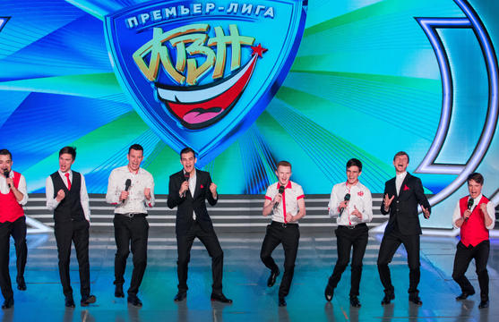 Светлана: Выход команд. Кстати, напомню, что в этом году у Премьерки юбилей – 15 лет. Сан Саныч на сцене.
