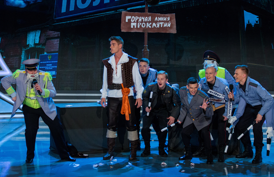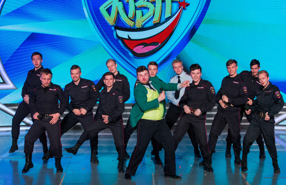 Светлана: На сцене настоящие стражи планеты КВН – сборная МВД. Стильные, а как танцуют. Немного легковесно пока – но, к счастью, до первой миниатюры.