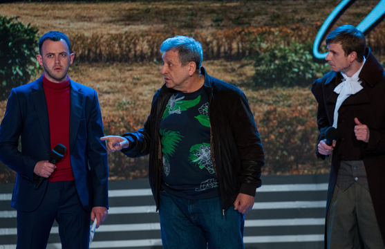 Андрей: Неожиданно начинаем приветствие в "Волжан". Сразу к миниатюрам и сразу к актёрской игре. И к " Игре престолов". Показывают смешного репетитора. Вот он смешной, с шутками хуже. Муж возвращается после кодирования тоже весело. Очень смешно на актёрке. Хороший старт.