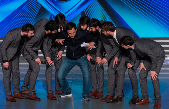 Андрей: Чеченцев кинул Лепс, но надоумил на это Санджар. Он открывает команде секрет, что в КВН главное шутки. Но вот с ними-то как раз не всё супер. И это не только моё мнение, зал поутих. Когда начинают показывать "Красавицу и чудовище" лучше не становится.