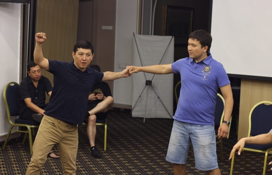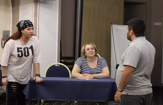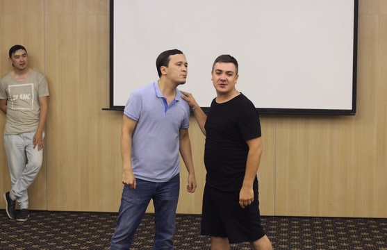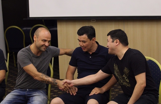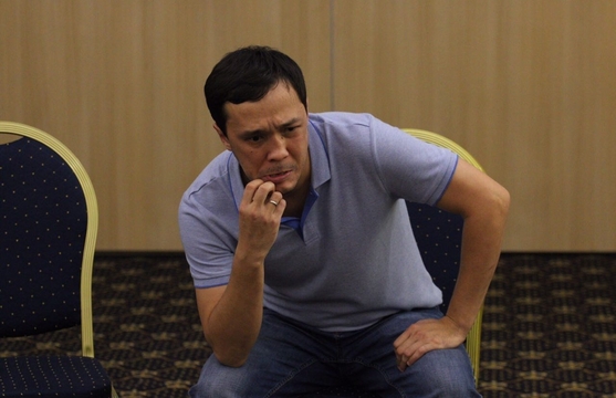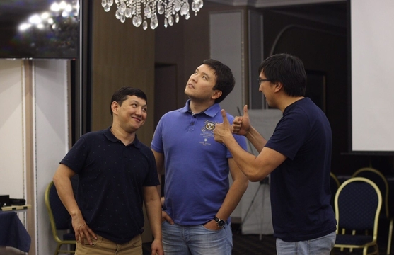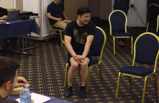 18.01 Все уже собрались в конференц-зале гостиницы KazZhol, а места за редакторским столиком заняли Айдар Гараев, Дмитрий Шпеньков и режиссер Михаил Ярченко.