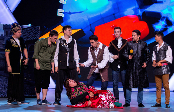 20.02 «В Камы-камы-камызяке тоже-тоже-тоже есть казахи». Невероятно эффектный выход, и шутка в разрыв: