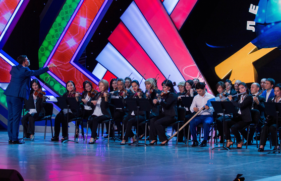 21.43 Оркестр акимата Астаны и казахи представляют МДЗ в нескольких частях. В роли дирижера – непревзойденный Нурлан. Забавный рефрен: «Хан, это же я!».