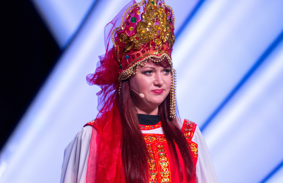 20.16 Пятигорск тоже берет колоритом – и это вау. Однако Оля и Таня работают на контрасте – выходят в кокошниках. нацелены, однако, попасть к кому-нибудь в гарем. Судя по тому, как оживились мужчины в зале, им это удастся.