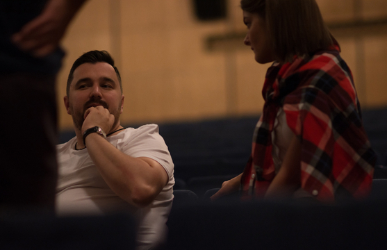 Новый день – новые редактуры: все усиленно готовятся к завтрашнему просмотру с Александром Васильевичем Масляковым. Просмотр состоится на сцене «Янтарь-холла» – мы покидаем ДК Светлогорского военного санатория, любезно приютившего команды на три дня. Фотографии из трогательных ретроинтерьеров Дома Офицеров – наш фотограф Вика Фролова сняла для вас все самое интересное: