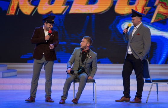 19.37 Жюри в зале, фанфары – начинаем! Александр Васильевич на сцене. Третий год подряд Калининградская область гостеприимно принимает у себя «Голосящий КиВиН» – и многие успели прикипеть к этому месту. Согласимся.