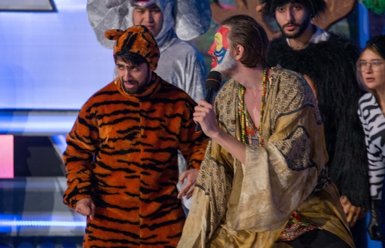 19. 30 Светлана: На сцене заводной РУДН — их всегда традиционно смешно представляет Сан Саныч. На этот раз они «великомученики от игры».