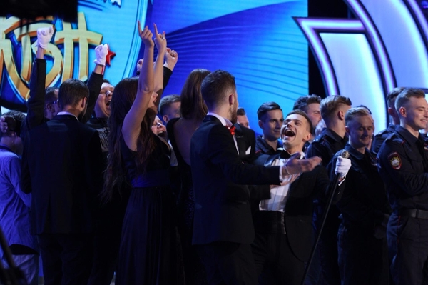 19.40 Андрей: ТУЗ слабей на старте, но шутка о жюри весёлая. Сын Нагиева не помогает особо и дальше играют своими силами. Джек и Роуз вместо "Титаника" выбрали плацкарт - неплохо. Вздох умиления вызывают реальные кошечки на сцене. И директор театра кошек Юрия Куклачева этот, как его... Ловят аплодисменты на животных, но по-настоящему смешат срывом командных покровов.