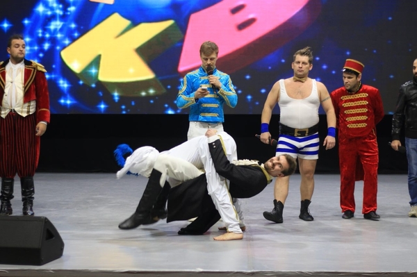12.21 Подобрать музыку для своего выступления они попросили самого Юлия Соломоновича Гусмана. Полуфинал — игра, как мы знаем, ответственная, поэтому на игру цирк привез всех работников — в том числе и уборщиков.