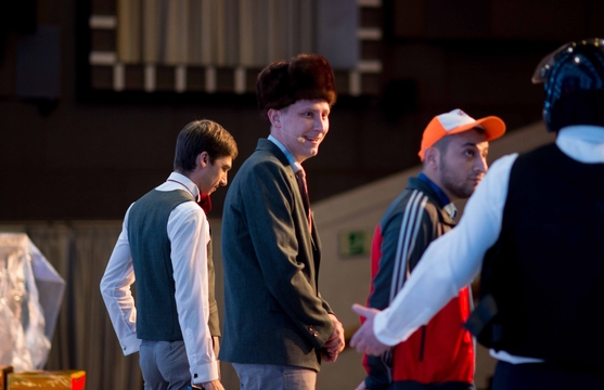 Игра набирает обороты: до спецпроекта — чуть больше суток. Работа не останавливается ни на секунду — команды бесконечно репетируют на сцене...
