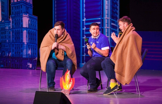 Некие такие позитивно-мимолётные отношения у нас сложились с капитаном команды Максимом Лященко, поэтому было бы странно, если бы я начал врать, что выступление было смешным. Дурачки на старте приветствия ещё повеселили, но дальше понеслись номера либо знакомые, либо проходные. К первой категории отношу разговор в семье гея, который хотя бы не пьёт, и физрука, грабящего банк. Ко второй страшилки в детском лагере и отбой в нём же. Пока что самым успешным выступлением в Москве у команды остаётся фестиваль прошлого года. Сейчас есть кадровые проблемы, авторские проблемы, но всегда остаётся несгораемый потенциал оправданного использования детей – абсолютный козырь в большом КВН, который мало кому доступен. Может стоит сделать упор на этом? Хотя я первым обвиню команду в читерстве. Оправданном опять же.