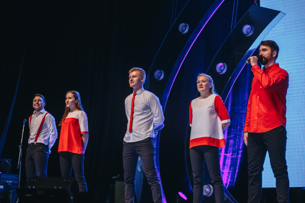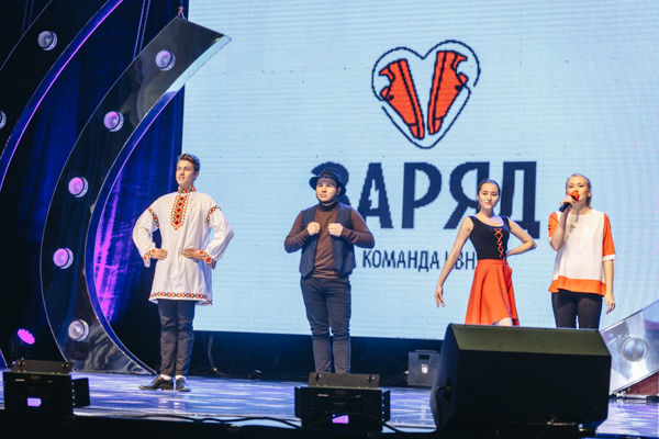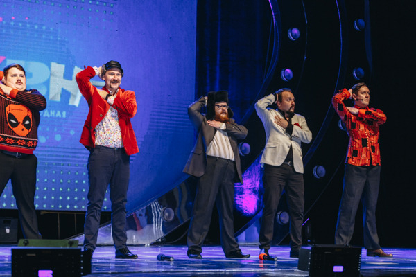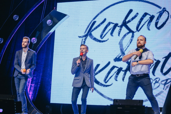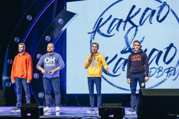 На сцене со своим приветствием команда КВН "Какао-какао".