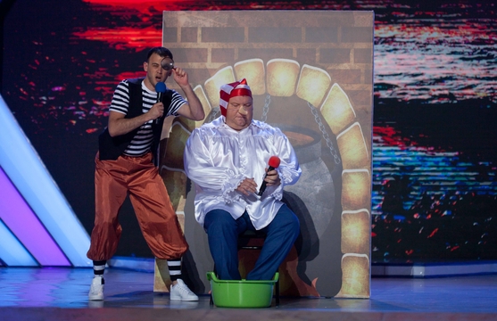 Дмитрий Колчин: Серьёзно ответить у меня не получится. Лень помогла (улыбается). Когда в последний момент тебе нужно сделать всё, ты делаешь гениально порой. А чтобы делать в последний момент, надо перед этим хорошенько полениться. Механизм нашей команды срабатывает, когда у нас появляется чувство опасности, как у самки, детёнышу которой угрожают — тогда она способна на всё. Но до этого момента мы будем «тюленить» по максимуму. Кроме реквизитно-административного цеха. Это непревзойдённый человек у нас в команде — Валерия Матковская. Она не спит ночами. Также у нас есть несколько авторов внутри команды, которые могут выдавать большие потоки шуток в определённых условиях. Мы были не совсем самопишущей командой изначально, но мы этот навык в себе развили. На эту игру только два наших друга приезжали с нами в качестве помощников авторов, а всё остальное мы делали сами. Это редкое качество в современном КВНе. Архиредкое! И сейчас у нас новая жемчужина появилась — Сэнгиль Ким. Это находка. Он профессиональный кавээновский звукач, мультиинструменталист, пишет музыку, режет видео. Он тот, кто выполняет функции пяти разных специалистов в нашей команде. И самое главное, он сильный кавээнщик, он прекрасно видит, что и как ему надо ускорить или отрезать. Он слёту понимает всё. Это нам очень облегчает путь, который и без того сложен.