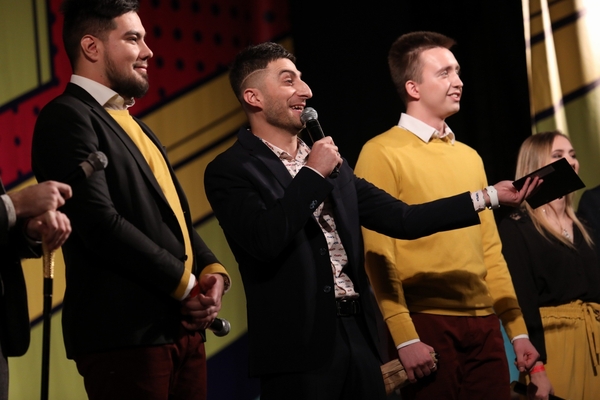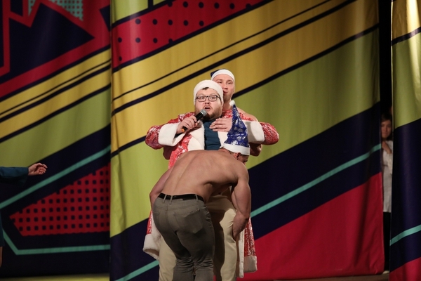 На сцене «Приталенные» филологи из Красноярска. Облажаться никак нельзя, но Дима напился, поэтому суд: