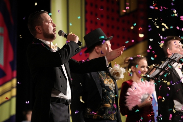 Наконец, приезжает актёр и поёт песню для финалистов Уралки прошлых лет под «Фигаро» и поздравляют с юбилеем Челябинский КВН. Здорово!