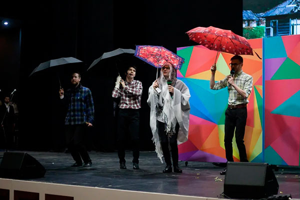 Вся команда в рубищах и тема соответствующая, поют песню Александра Розенбаума «Ау». Цельный музыкальный номер от команды из Сочи, что радует, тем более в прошлом сезоне такие конкурсы команде удавались. Даже Розенбаум команде позвонил.