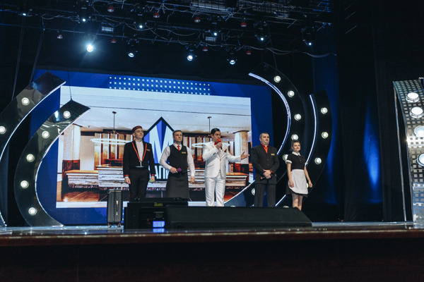 На сцене не просто команда КВН, а настоящий отель.