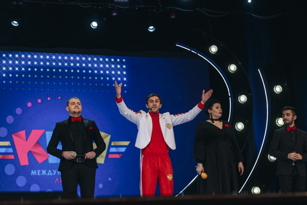 Итак, на сцене режиссёр-постановщик Телевизионной Международной Лиги МС КВН Эдуард Шалютин.