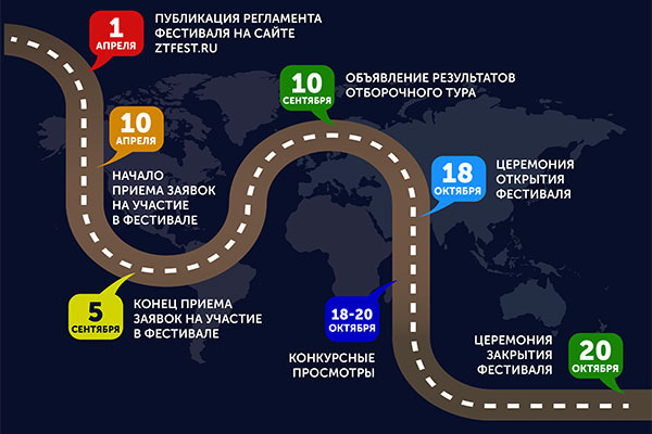 Подача заявок осуществляется с 22 апреля по 5 сентября 2019 года на официальном сайте фестиваля ztfest.ru.