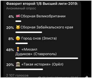 Первая игра в вышке, по ощущениям, далась ребятам легко. И если судить по онлайн-голосованиям непосредственно перед игрой, Дудики были в числе фаворитов (например, в телеграмм-канале «Такстоп» 48% пользователей поставили ребят на первое место).