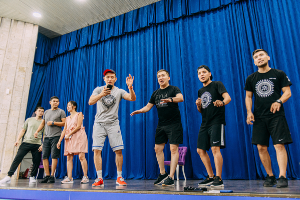 На сцене "Спарта". Вышло пол-Казахстана. Обязательная шутка про новую столицу этого самого Казахстана.
