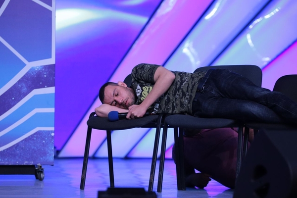 Выходит один Соколов. Осматривается. Убегает за кулисы. Кричит своим: "Ребят, тут реально КВН будет! Всё подтвердилось!"